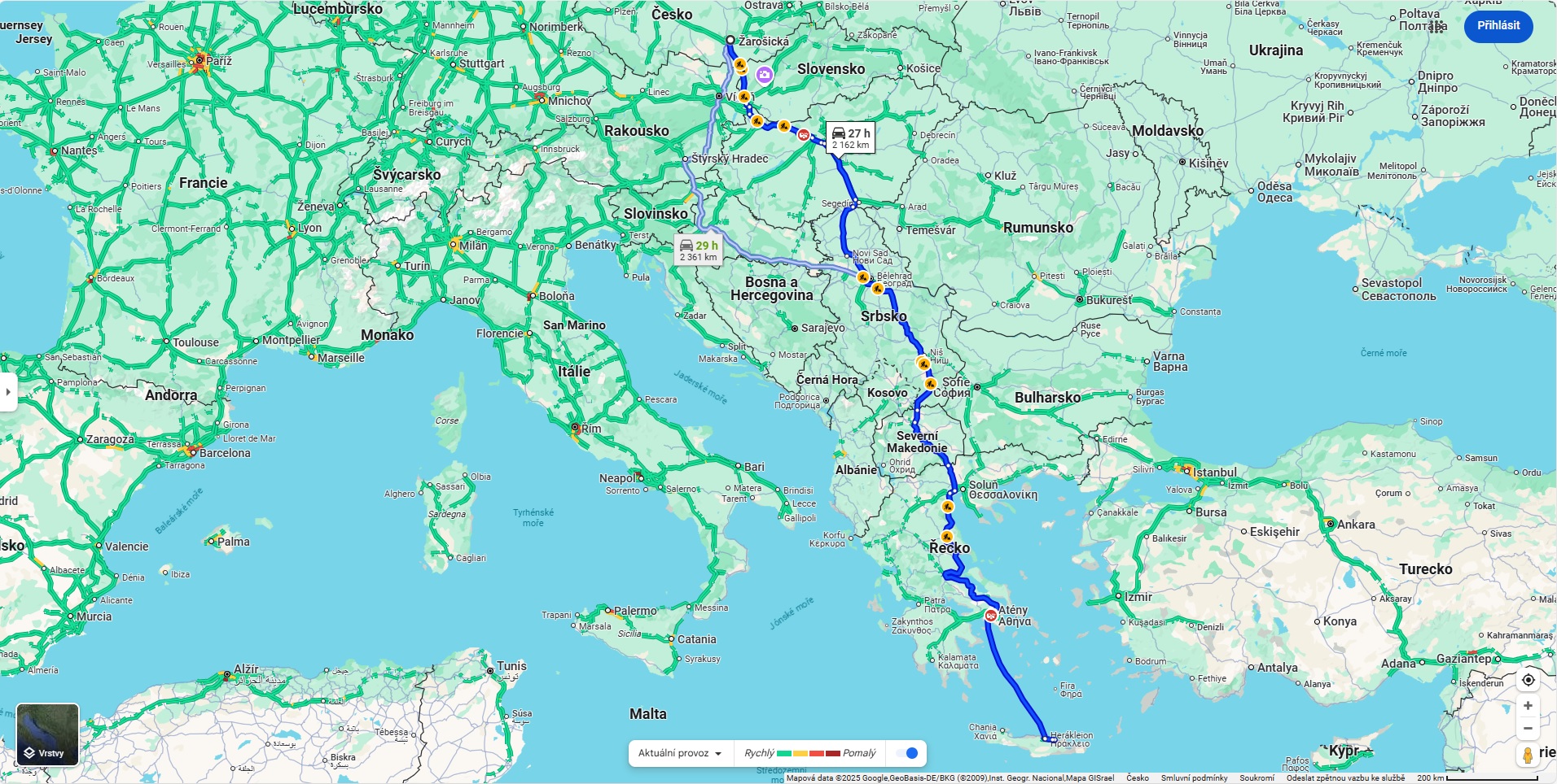 Příprava na cestu začala výběrem termínu s tím, že celkový trip bude trvat 14 dní. Druhý a nejdůležtější ůkol byl, zajistit trajekt z Pirea do Heraklionu a zpět. Pojedeme 3 dospělí a Logan s délkou 4,5 metru. Tu délku auta zadáváte při objednávání trajektu. Takže kouknout na Minoan Lines, zabukovat lístky a místa v kajutě. No a zaplatit. Zpáteční palubní lístky pro 3 lidi, včetně kajuty a auta, vyšly na necelých 13.000,- Kč. Zaplaceno kartou, vytištěno a teď je máme jako zlepšovač nálady na skřínce, kde jsou krásně na očích. Vyplouváme z Pirea ve 21:00 místního času a připlouváme do Heraklionu druhý den v 6:30. Nazpět jsou časy stejné, tj. v 21:00 z Heraklionu a v 6:30 ráno druhý den na pevnině. Cesta z ČR povede přes Slovensko, Maďarsko, Srbsko, Severní Makedonii do Řecka. Celkem do Pirea 1.800 km. Přes Srbsko je cesta příjemná, už jsme tudy jeli do Bulharska, spali jsme ve městě Niš. Srbové jsou vesměs příjemní a pohodoví lidé, jen ten sterilní západ se tam začíná pomalu vkrádat. Ale o tom až jindy. Takže cesta tam bude na 2 dny. První část bude durch až do Řecka. V plánu je minimálně 1.400 km na jeden zátah s tím, že se budeme všichni střídat za volantem. Vyrážet se bude v pátek krátce před půlnocí, abychom v sobotu k večeru byli na půlce cesty ze Soluně do Atén. V neděli ráno start do Atén, tam prohlídka okolí před naloděním. Na Krétu vjedeme v pondělí ráno. Jelikož jsme na Krétě byli už 2x, to jsem mohl ještě létat, víme kde si "rozložíme základní tábor". Tohle bude ta válecí část s výlety autem do hor atp. Zajímavější to bude na cestě zpět, kdy se budeme potloukat Makedonií.